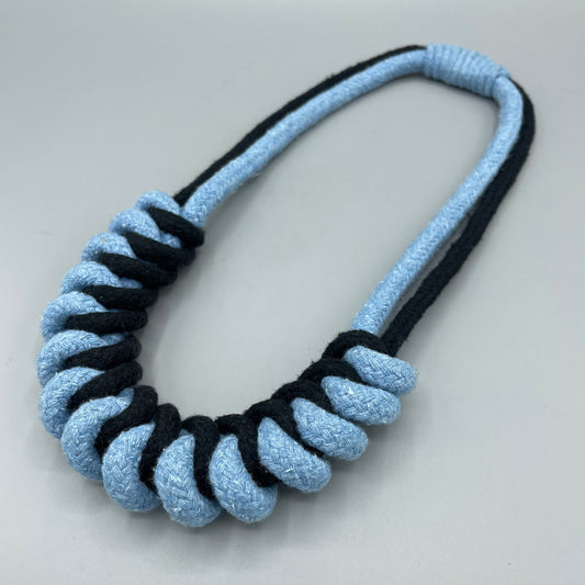 Chunky Cotton Rope Macrame Necklace - Black & Light Blue
