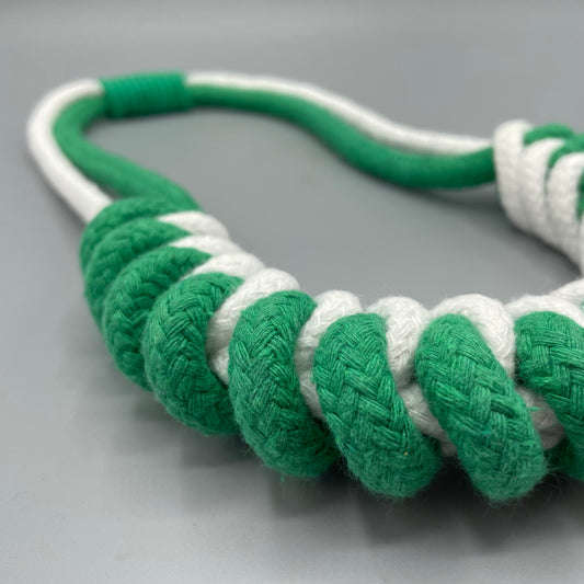 Chunky Cotton Rope Macrame Necklace - White & Green