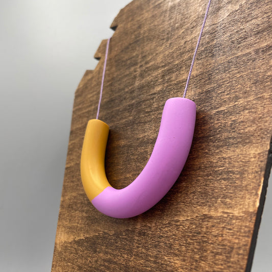Polymer Clay Tubular Necklace – Mustard & Lavender