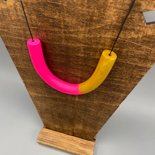 Polymer Clay Tubular Necklace – Neon Pink & Gold