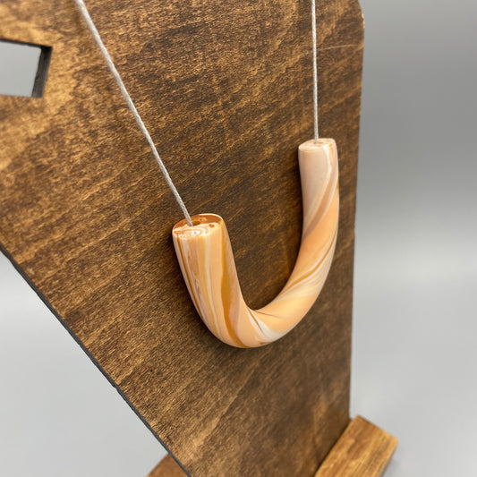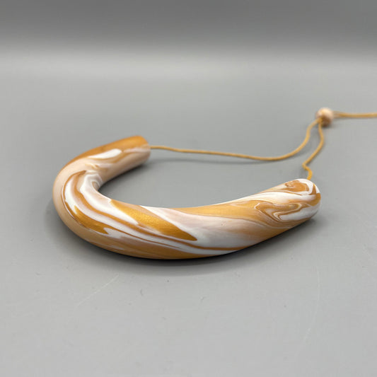 Polymer Clay Tubular Necklace – Marbled Peach, Gold & White