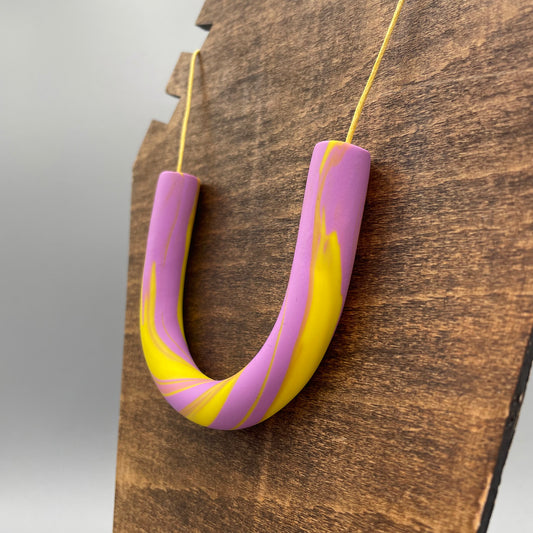 Polymer Clay Tubular Necklace – Marbled Lavender & Lemon Yellow