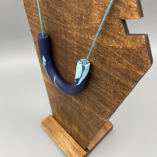 Polymer Clay Tubular Necklace – Marbled Navy & Mint