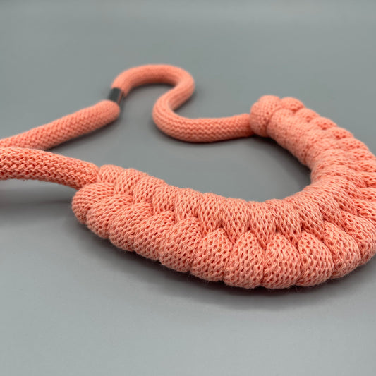 Recycled Cotton Macrame Necklace - Coral