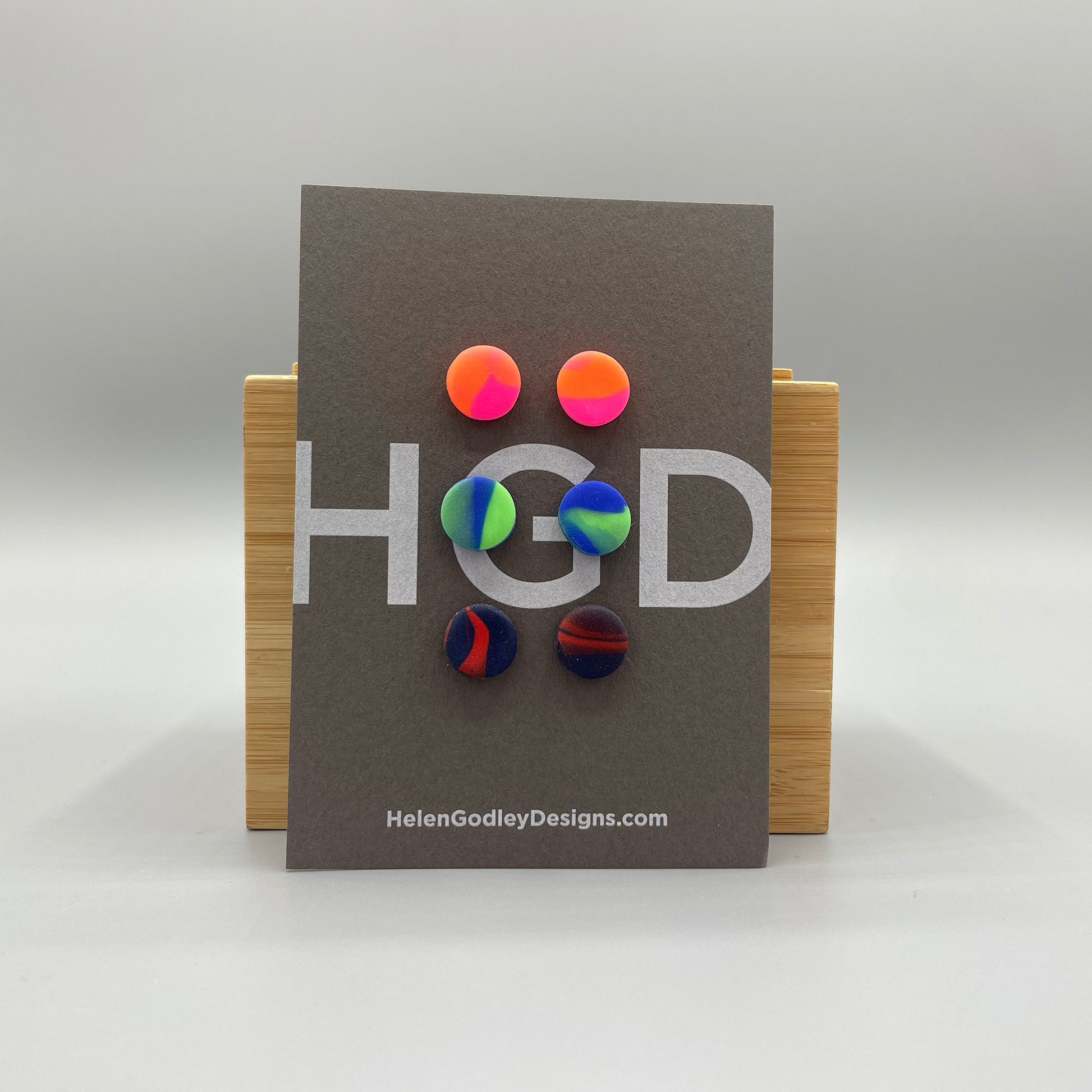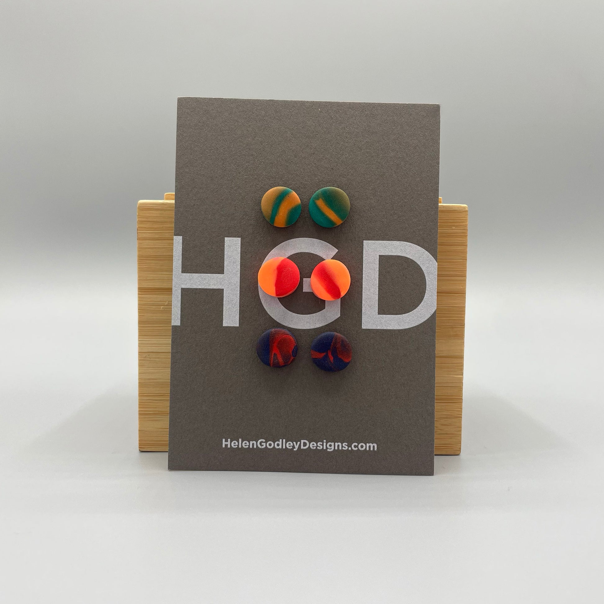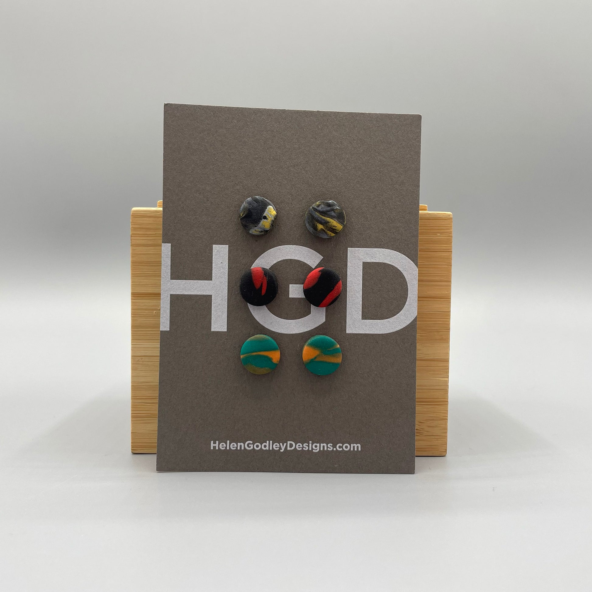 This great everyday earrings set includes 3 pairs of marbled studs made from lightweight polymer clay.